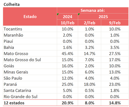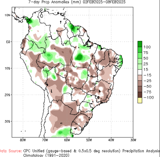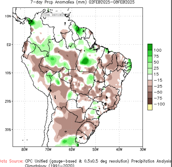 未来一周(2.9-2.15)中西部GO、MS、南部PR几无降雨,MT、RS零星降雨,不过RS降雨在2月下旬有改善,中西部天气偏干有利于收获推进。