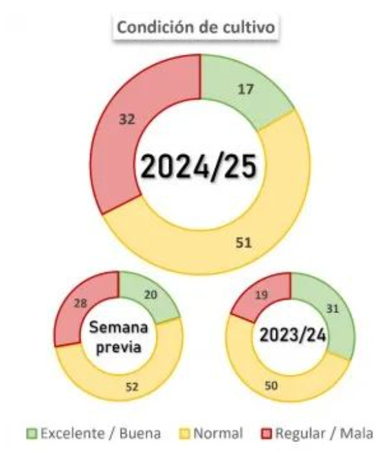 截至2.5,大豆作物状况评级良好占比17%(上周值20%,去年同期值31%),正常占比51%(上周值52%,去年同期值50%),较差占比32%(上周值28%,去年同期值19%)。