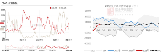 美国大豆:中性偏空 当前美豆方面受宏观贸易关税影响较大。上周第一个交易日,市场交易我国对进口大豆加征关税的预期,美国延期对墨西哥(美豆重要买家)加征关税,利好美豆、豆粕。2.10特朗普签署行政命令,宣布对所有进口至美国的钢铁和铝征收25%关税,引发市场对美国谷物和大豆出口可能遭到报复的担忧。CFTC持仓方面,本周美豆CFTC净多减少。24/25季美豆对华净售环比、累计同比增加,但对华累计出口不及去年。此外南美丰产预期依旧使得美豆上行空间受限。