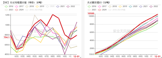 12月进口豆环比增加,24年进口大豆1.05亿吨