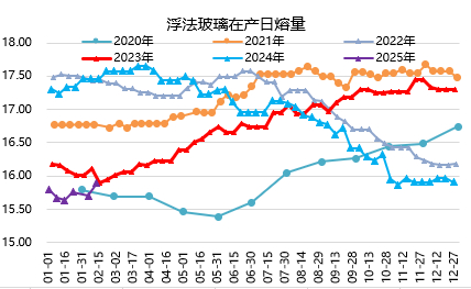 节前玻璃生产线进行冷修,日熔量小幅下降;节后已有3条生产线点火复产,且点火复产速度有加快趋势。按照当前的日熔量以及需求环比好转的预期,预计3月之后库存将开始下行,绝对库存压力可能低于2024年。不过,供需层面由于缺乏需求端的实际验证,这一预期暂时难以兑现。