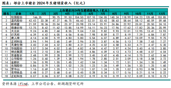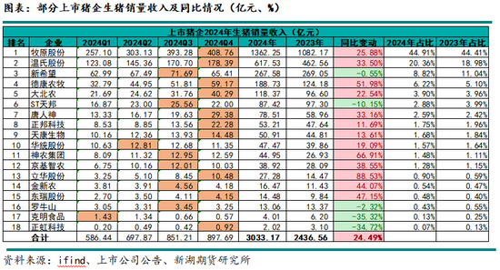 三、2024年上市猪企生猪销售收入情况