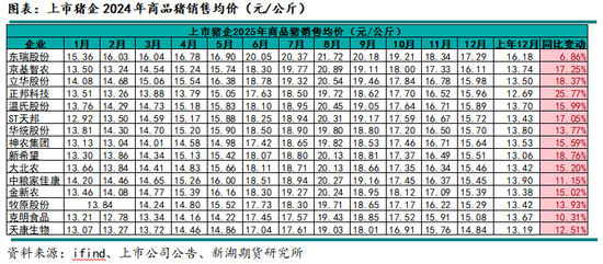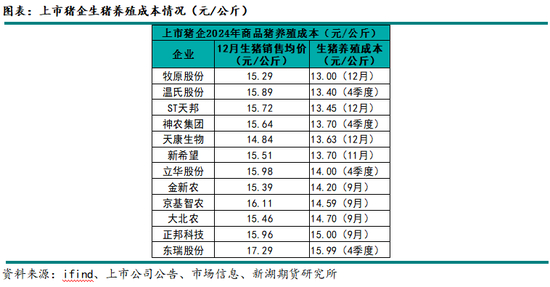 四、2024年上市猪企生猪销售均价及成本情况