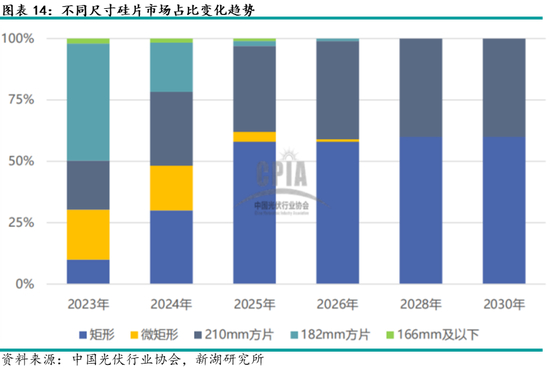 从硅片尺寸来看,210mm等大尺寸硅片市场占比迅速增长,预计将成为未来市场的主流尺寸。
