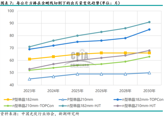 另一方面,受益于金刚线直径降低,硅片厚度不断下降,等径方棒每公斤出片量将增加,这也驱动了硅片单瓦硅耗的下降。