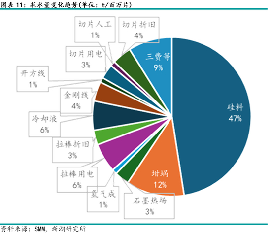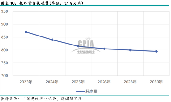 伴随切片工艺的提升,以及节水增效措施的改善,硅片单位耗水量将维持下降。