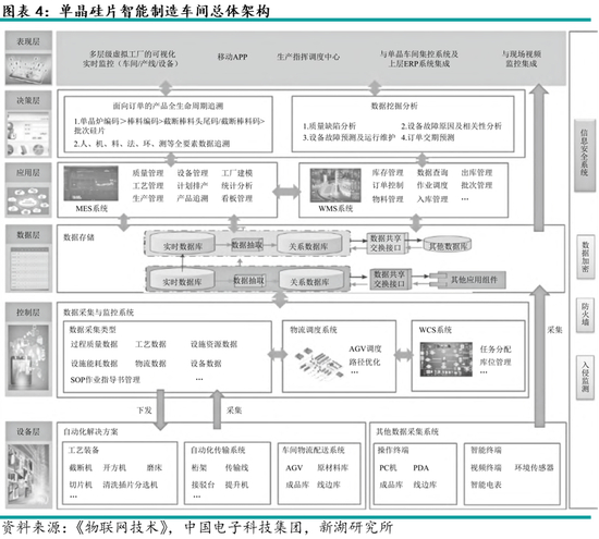 目前行业较为先进的灯塔工厂基本已通过自动化系统,将仓库、硅料准备车间、晶体车间、机加车间、切片车间、插片分选车间、包装车间等全工艺段串联与协调,并进行智能化赋能,涉及了人、机、料、法、环、测等全部环节。