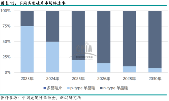四、N型硅片渗透率逐渐提升,大尺寸硅片渗透增加
