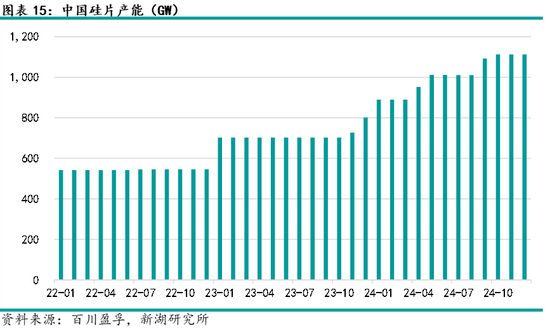 2021年起,光伏行业由于多重原因带来的供需错配,使得行业加速扩张,而硅片行业不例外。至2024年末,全国硅片产能由2021年初的540GW左右快速增长至1100GW。