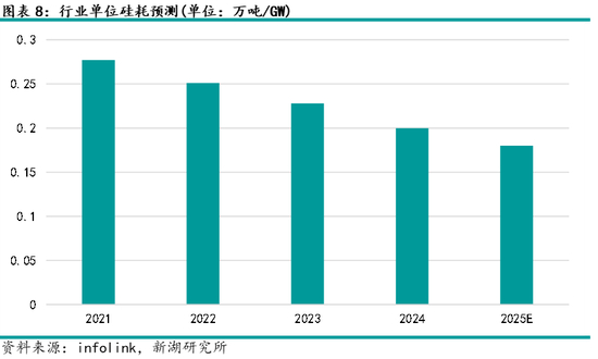 当然,单位硅耗不单单受硅片薄片化和切割的细线化影响,电池高效化,以及工艺成熟化也是行业单位硅耗持续下降的助力。