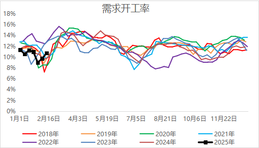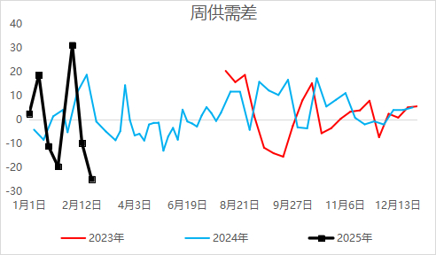 需求方面,农业采购一波后重回谨慎,等待下一波释放,但复合肥及工业需求持续回升,下方空间存有支撑。2024年下半年需求偏弱,下游按需、谨慎采购为主,下游库存整体偏少。随着春耕需求释放,下游拿货量预估好于2023年,边际去库偏大。第一波尿素农业需求释放,终端农业及复合肥拿货较多,企业库存连续两周下降。2025年2月19日最新企业库存数据142.25万吨,去库24.69万吨,环比下降14.79%,去库幅度较大。供需虽有时间上错配,企业去库逻辑已兑现。