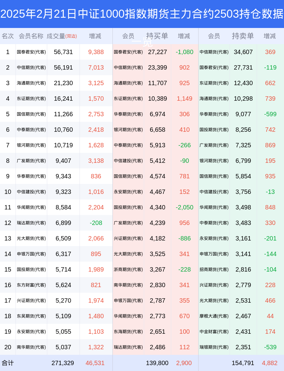 根据合并数据显示,多头前三席位为国泰君安(代客),总持仓44620、中信期货(代客),总持仓40153、东证期货(代客),总持仓16931;空头前三席位为中信期货(代客),总持仓63889、国泰君安(代客),总持仓42222、海通期货(代客),总持仓22704;