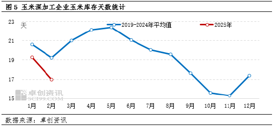 春节前,部分深加工企业玉米库存建库量低于往年水平,春节过后,市场玉米供应恢复缓慢,玉米上量偏少,截至2月20日,据卓创资讯监测数据显示,深加工企业玉米平均库存在16.3天,仍处于偏低水平。同时,随着企业开工陆续恢复,企业开工率提升,玉米加工量增加,在企业刚需采购的情况,深加工玉米需求略有提升;同时部分企业补库需求仍存。