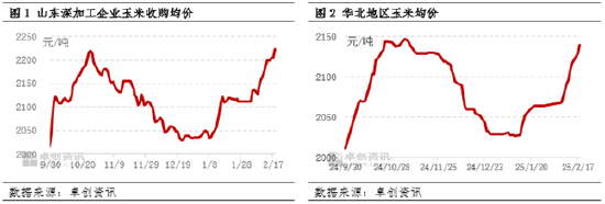 卓创资讯监测数据显示,截至2月18日,山东地区深加工企业平均收购价格为2223元/吨,较春节前涨112元/吨,累计涨幅5.30%,同时价格达到了2024年10月份以来的最高价;华北地区均价为2139元/吨,较春节前涨75元/吨,累计涨幅3.63%。