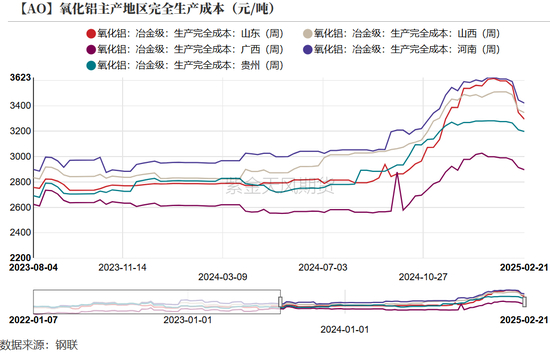 生产成本方面,因几内亚铝土矿价格下降,成本重心小幅下移,当前各地区运行在2900~3370元/吨左右。