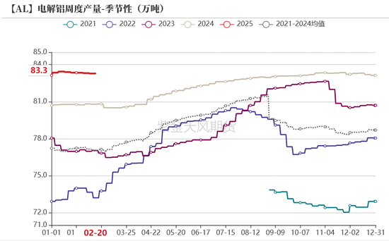 氧化铝需求量:偏多 截止上周四,上周电解铝周度产量为83.31万吨,环比增加0.03万吨或0.04%。