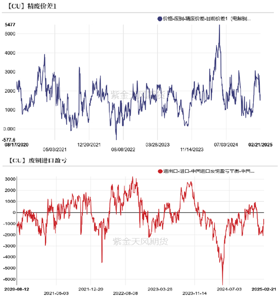 上周,铜价小涨,沪伦比值回落,进口盈利空间快速恶化,约在亏损1000元/吨左右,出口转向盈利。短期内国内比价将维持弱势,直至2季度后或出现改观。