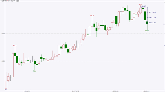 原木盘面近期出现连续下跌,主力合约2507至高点已下跌40点左右,整体盘面情绪跟随商品市场同步回落。