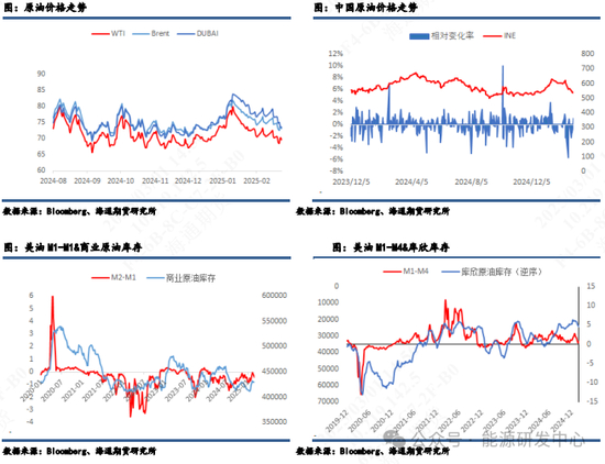 2月最后一天市场认定美国将与乌克兰签署矿产协议之际,在白宫椭圆形办公室里泽林斯基与特朗普在全世界关注下上演了一出让人瞠目结舌的激烈争吵,最终没有签署协议,双方不欢而散,这个事件对市场的影响更像是过去一段时间国际油价受到地缘扰动的一个缩影,特别是美国实施的一系列政策成为了影响油价的重要因素。这其中特朗普上任后推出的一系列让人眼花缭乱的措施让油价在大幅波动中持续走低。1月底2月初,美国总统特朗普陆续推出了对墨西哥、加拿大和中国加征关税的政策,涉及多种商品,引发了市场的担忧。原油市场着重关注特朗普是否将原油纳入关税清单,而加拿大是美国原油的主要进口国,加拿大和墨西哥出口到美国的原油量大约在400万桶/天和50万桶/天,将对美国炼厂造成较大影响。其次,这也可能会影响到美国出口商品受到反制:1)加拿大总理宣布将对价值1550亿加元的美国产品加征25%的关税;2)墨西哥总统也表示将采取反制措施;3)中方表示将向世贸组织提起诉讼,并将采取相应反制措施坚定维护自身权益。随着贸易政策的变化带来了新的险,商品市场面临的情况变得更加复杂。