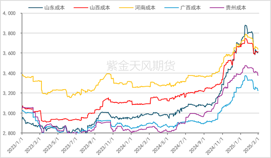 全国现货连带成交价格加速下跌。具体而言,截至上周五,山东地区价格上涨80元/吨至3380元/吨,山西地区上涨50元/吨至3350元/吨,广西地区价格未变动,仍为3390元/吨,河南地区价格上涨20元/吨至3380元/吨,贵州地区价格未变动,仍为3420元/吨。