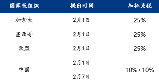 • 250201:特鲁多在新闻发布会上称,加拿大将对美国产品征收25%关税,一部分在2.4生效,一部分在21天内生效。墨西哥称要对美国输墨产品加征关税。