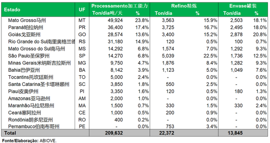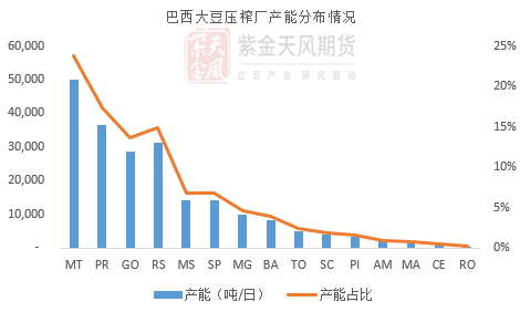 巴西国内大豆压榨产能分布