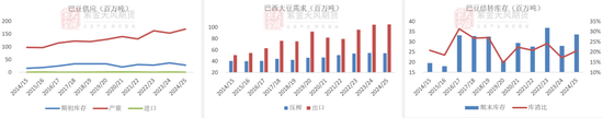 24年巴西累计压榨+出口不及23年,25年当前理论剩余量高