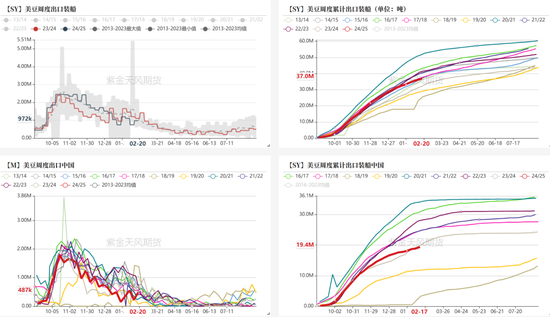 截至2月下旬,24/25美豆累计出口偏低
