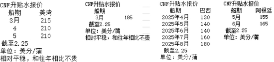美湾、美西、巴西、阿根廷CNF升贴水