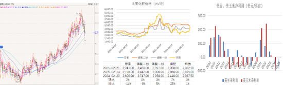 • 化肥价格:23年、24年主要化肥价格波动平稳,当前价格处于历年同期中等水平,且据USDA的预估,25/26年种植成本里的化肥成本将下降较多,此外,由于大豆有固氮作用,化肥在玉米种植成本中的占比明显高于大豆。