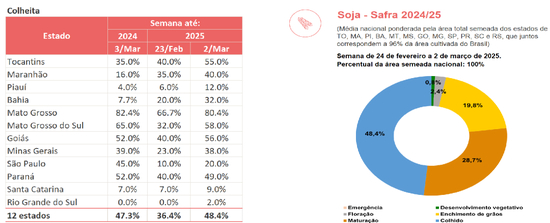 巴西大豆收获步伐自2月中开始加快,3.2已超过去年