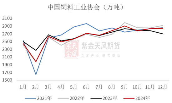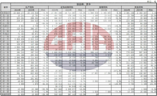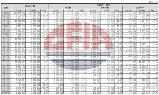 24年肉禽饲料产量同比增长,其余结构品种下降