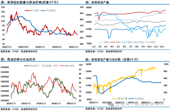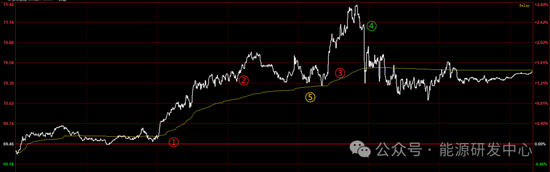可以看出虽然上述影响因素只是一天之内发生的变化,但基本上可以体现特朗普上任以来美国对原油市场从方方面面施加的影响。而这些因素的出现对油价的影响在日内波动上体现的也非常明显,前三条消息影响供需端利多作用明显,第四条则导致油价高位小跳水,最后一条从宏观层面影响则较为复杂,对油价影响多空交织。
