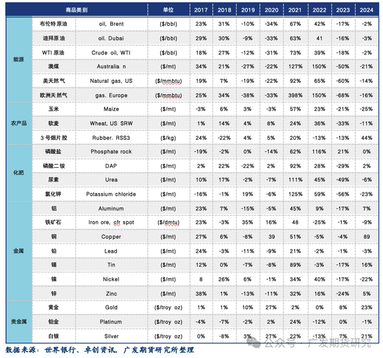 图表1:涉及俄乌地区的相关商品年均价格同比变化趋势