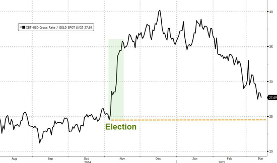 黄金近期的强势几乎完全抹去了比特币自大选以来的优异表现。高盛预计,如果对美国财政可持续性的担忧加剧,到2025年12月,金价将再上涨5%,达到3250美元/盎司。