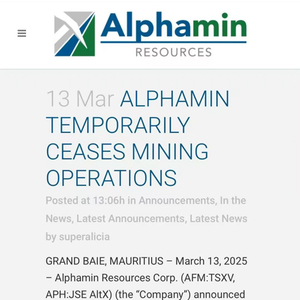 【20250314】【锡云评论】Alphamin暂停锡矿采矿作业!供需或将改写