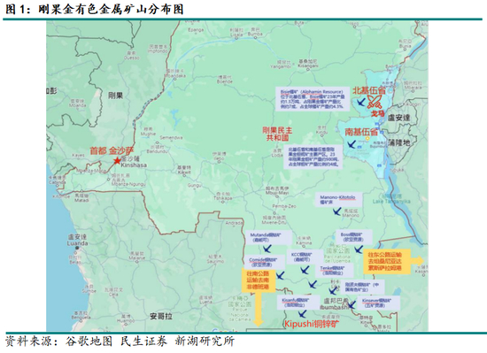 从地理位置来看, Kipushi矿 位于 刚果(金) 西南 部, 上加丹加省 西南部 Kipushi镇 附近,毗邻 赞比亚 边境,距离 Kamoa-Kakula铜矿项目 东南约250公里,距离目前武装冲突集中的东部地区较远,生产暂时未受到影响。