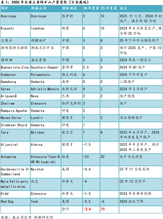 其中最大的锌矿为艾芬豪矿业的基普什(kipushi)锌矿。其在2024年6月重启,24年贡献5万金属吨产量,并计划在2025年年中将选矿厂处理能力提高20%,达到年产能28万金属吨的目标,占全球产量的2%左右,成为全球第四大锌矿。年初我们给予该矿25年共15万吨的预期增量。从最新产量披露来看,基普什选厂1月份产锌1.6万吨,2月份产锌1.2万吨,从日度产量来看,并没有快速爬产,甚至2月日产量有所下降,目前进度来看,也仍在我们年初预估中。