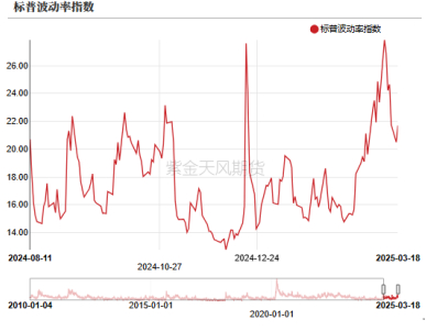 就近期的金油比走强的驱动来看,我们可以发现不确定性在持续的积聚,根据部分市场机构的研究结果显示,受特朗普相关政策言论高频反复影响,总体政策的不确定性和具体贸易政策的不确定性都非常高,近期随着美国的部分关税政策的出台,显性经济指标也显示有部分经济疲软的迹象,部分相关的资产也都在不同程度计价美国衰退,如标普500波动率指数也不断冲击新高。避险情绪激增,黄金也不断冲高。