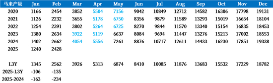 棕榈油产地马来方面,原先市场预期今年产量基本持平去年的高产状态,但是今年开年1月受到洪涝影响产量端被抑制,2月产量进一步下滑,再叠加几乎贯穿3月的斋月,预计2025Q1马来产量开局较差,今年全年产量持平去年的乐观预期是否能够兑现当前是需要打一个问号的。