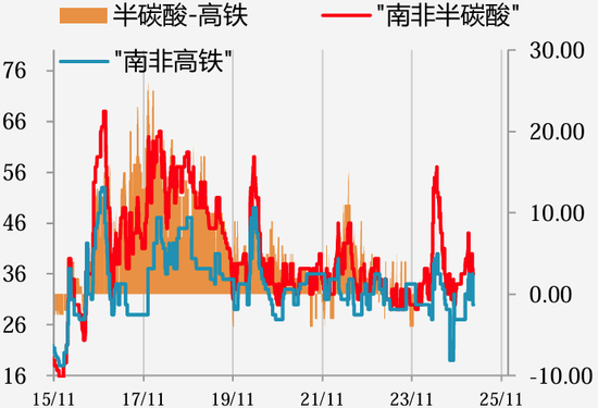 品种结构方面,卷螺差持续维持宽幅震荡格局,需求端热轧卷板仍保持相对螺纹钢的强度优势。市场聚焦的铁碳比价波动受双边驱动:一是澳洲飓风季对铁矿石发运量的阶段性扰动,二是焦煤基差持续走弱背景下,盘面升水扩大引发的仓单压力担忧,二者共同作用催生出较为极致的行情波动。