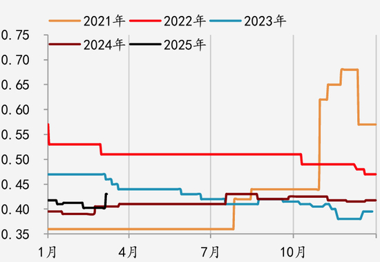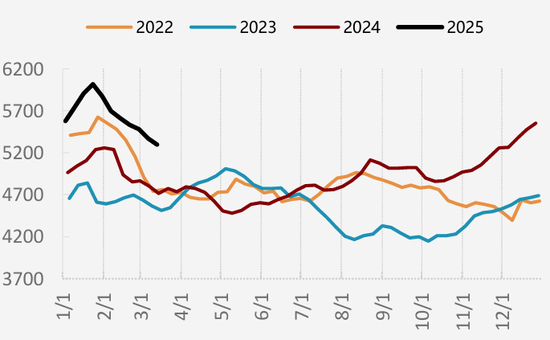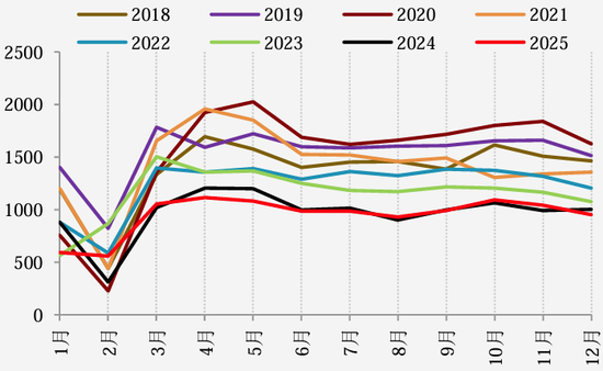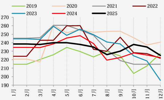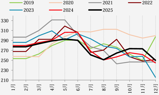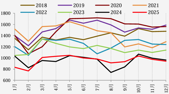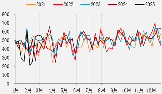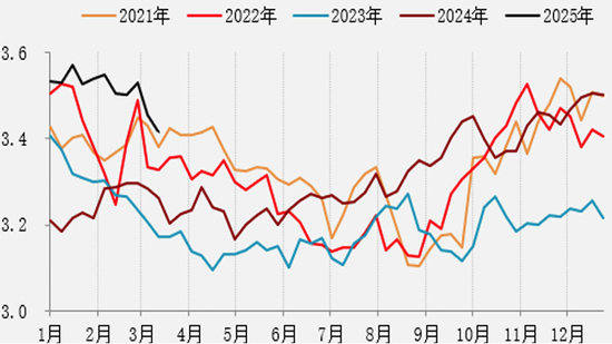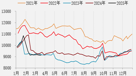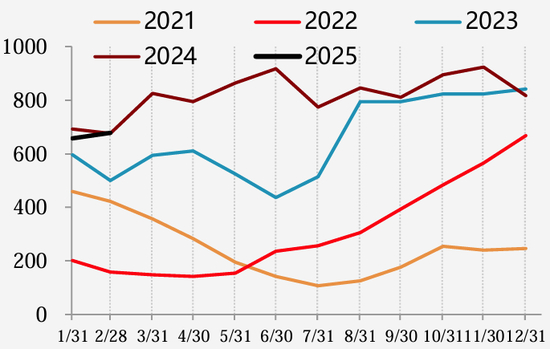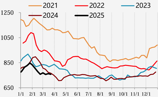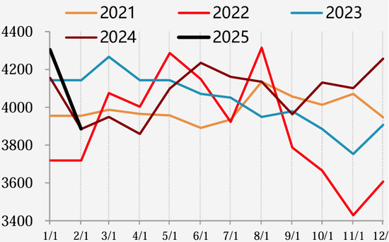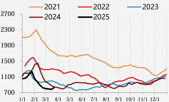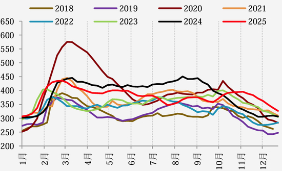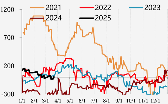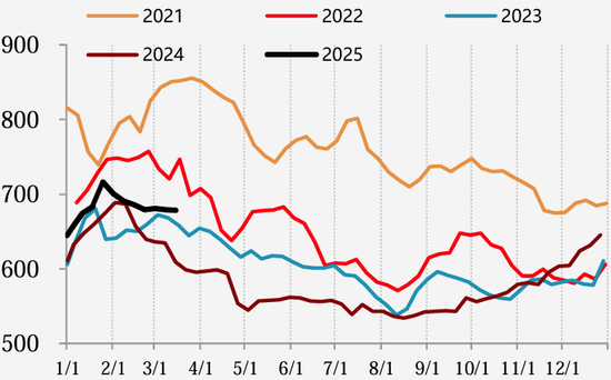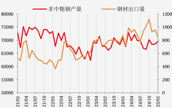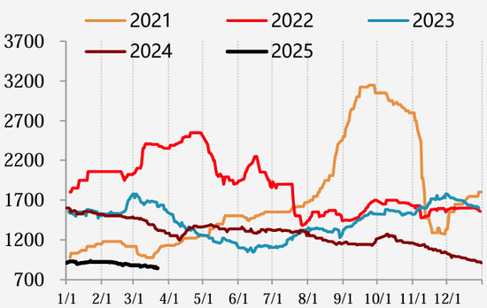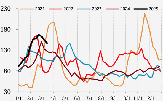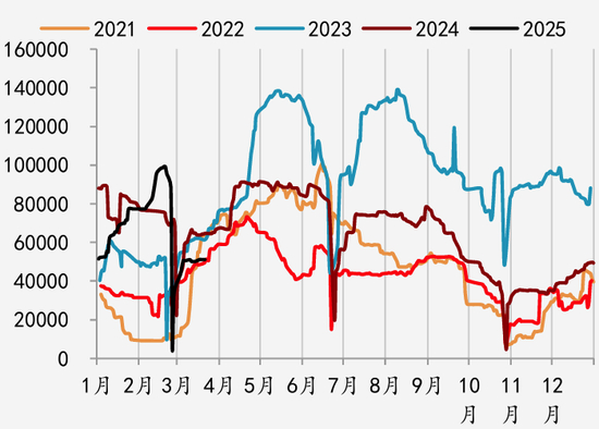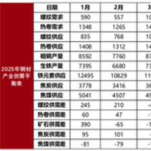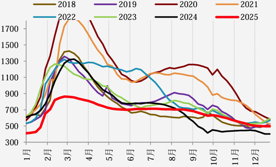从钢厂库存角度看,虽然2025年生铁产量不算低,但工厂继续维持低库存运行,表现出谨慎的市场态度,所以从2024年年底开始,大补库逻辑淡化,集中补库的情况减少,对现货价格的支撑也相应减弱。