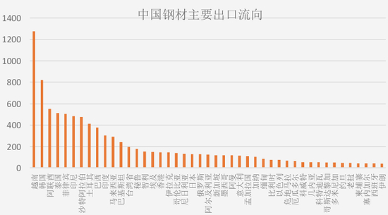 越南出口的大部分增量主要来自于中国的转口增量,越南是我国出口流向最大的国家,其次是韩国,这两个国家已先后对中国开展反倾销,影响相比其他国家要大些,后期应重点关注进一步动态。在极端假设下,如越南、韩国、墨西哥等主要转口国全面限制中国钢材,间接出口减量或超2700万吨,需供给端同步收缩以平衡市场。