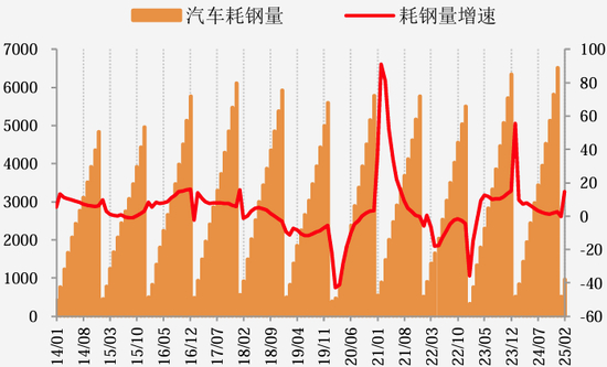 汽车需求主要依赖出口驱动,短期出口仍具韧性,但中长期面临供应链替代导致份额缩减及反倾销风险,增长趋势或将趋缓;内需端受益于政策刺激、下游阶段性补库及节日效应,1-2月销量同比增长14.8%,后续需关注以旧换新补贴能否加码以进一步释放需求潜力。