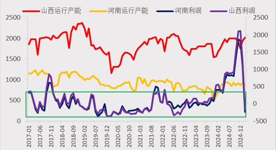 ② 二季度,成本上来看,当前以93美元/吨矿价测算,晋豫地区现金成本在3300元/吨,若以85美元/吨矿价测算,晋豫地区现金成本大致在3100元/吨;历史上,晋豫地区利润在-400至400元/吨间波动;假设以矿价85美元/吨的成本衡量,可推算出理论上的现货价格极值。