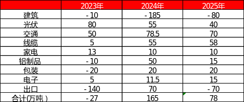 终端需求上,拖累项依然在地产,但光伏、新能源等增量已超过地产,此外电力投资带动下的铝线、以及受益国补的家电等提供正增量。