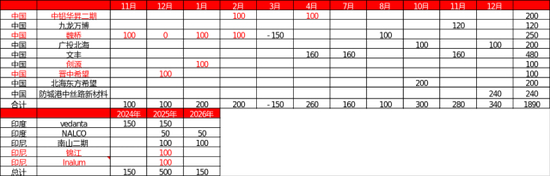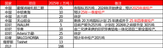 海外新增项目主要集中在印度、印尼、俄罗斯等国家,受制于基础设施建设、电力供应、成本高企等,总体扩产进展仍较为缓慢,比如印尼华青于2024年10月底通电投产,当时启槽总规模仅约3万吨左右,剩余产能延期投产。印尼有的配备了燃煤电厂,所以2025年增量主要来自印尼,预计新增产能总计约80万吨。