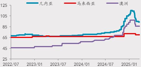 2025年截至目前,进口矿增量较大,截至3月21日,铝土矿到港同比增量955万吨,周度增量约80万吨,当然有增加港口样本的缘故,扣除掉此小样本,年化增量也是非常可观的。进口矿石供应充足加之氧化铝厂低利润,进口矿石价格高位回落,几内亚矿石零单最高到过130美元/吨,目前最低成交价到89美元/吨。此前几内亚个别大型矿山二季度长单价格已出,为94-95美元/吨左右,但下游询盘意向价格在87-88美元,部分买方意向价格已至80-85美元/吨,多空分歧较大。