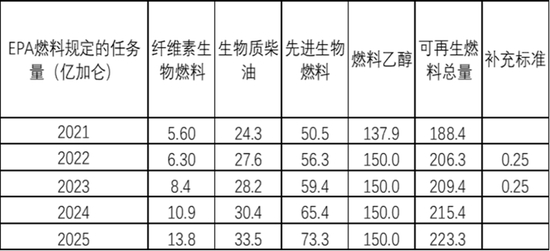 1、从再生燃料配比责任量(Renewable Volume Obligation,RVO)的义务量看,2024年美国的RVO义务量是215.4亿加仑。2025年的RVO义务量是223.3亿加仑,比2024年增加7.9亿加仑,增幅为3.5%。白宫方面在2024年发布了议程,预计2025年12月份会公布2026年的RVO的量,比之前市场的预期推迟了一年多,(之前应该是2024年11月1日公布。)现在市场讨论的就是未来几年的生物柴油和可再生柴油用量。从目前给出的预期量来看,会议上的各方已基本同意向EPA提出大幅提高可再生柴油和生物柴油的掺混量要求,讨论的掺混范围在47.5亿至55亿加仑之间,这个量比2025年的生物质RVO量增长了41.79%~64.17%。确实未来的需求预期仍然是增长的。