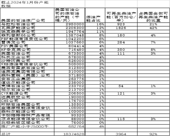 2、从产能情况看,截止2024年12月,生物柴油产能在19.95亿加仑,可再生柴油产能在45.8亿加仑。二者的产能合计为65.7亿加仑。从实际的产量看,2024年生物柴油的产量为16.72亿加仑,可再生柴油的产量为31.88亿加仑,二者合计为48.6亿加仑。